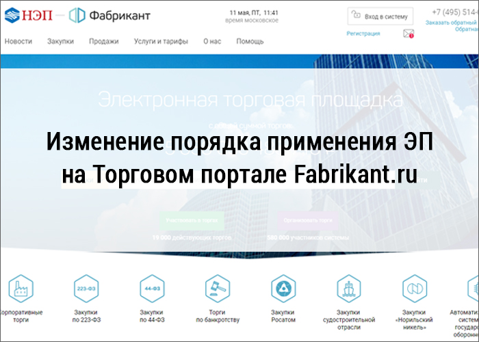 Изменение порядка применения ЭП на Торговом портале Fabrikant.ru